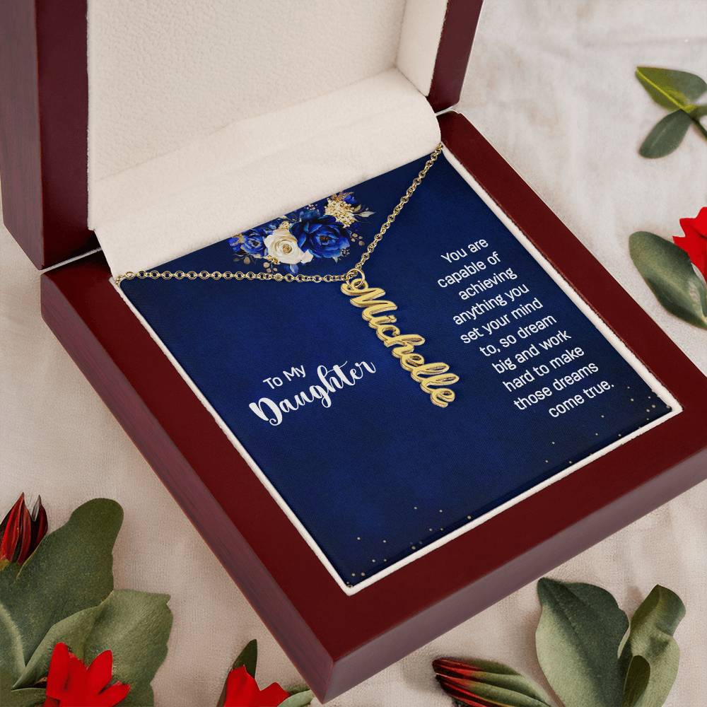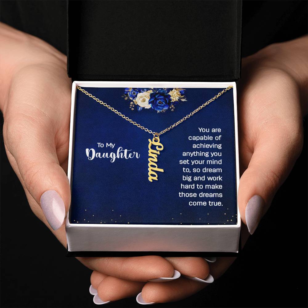 Give your special someone a custom vertical necklace made just for them! Our Personalized Vertical Name Necklace is the perfect gift for your loved ones and will become a versatile accessory for any occasion. From a heart-warming holiday present, anniversary or birthday gift, or just because, this unique necklace adds a trendy touch to any outfit.