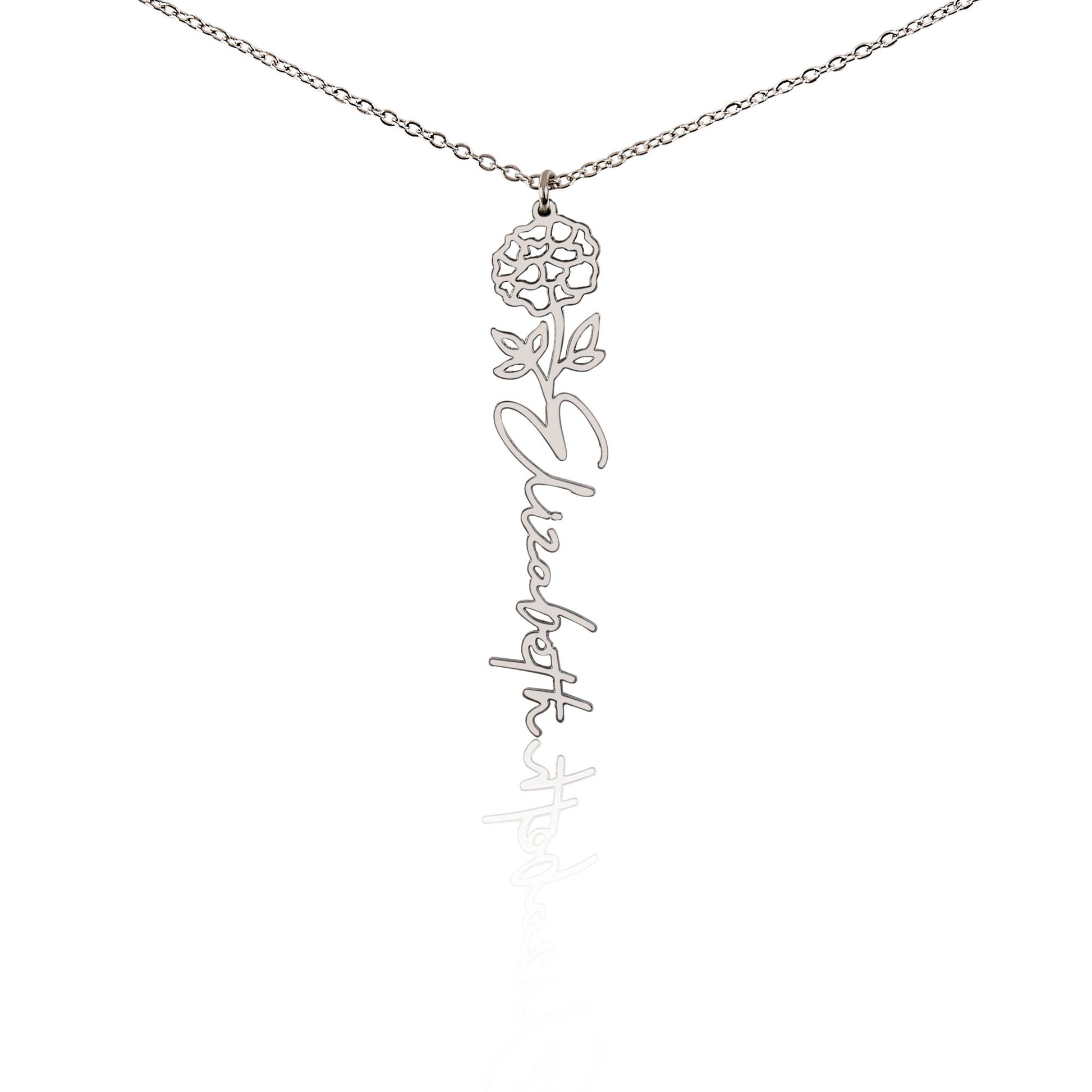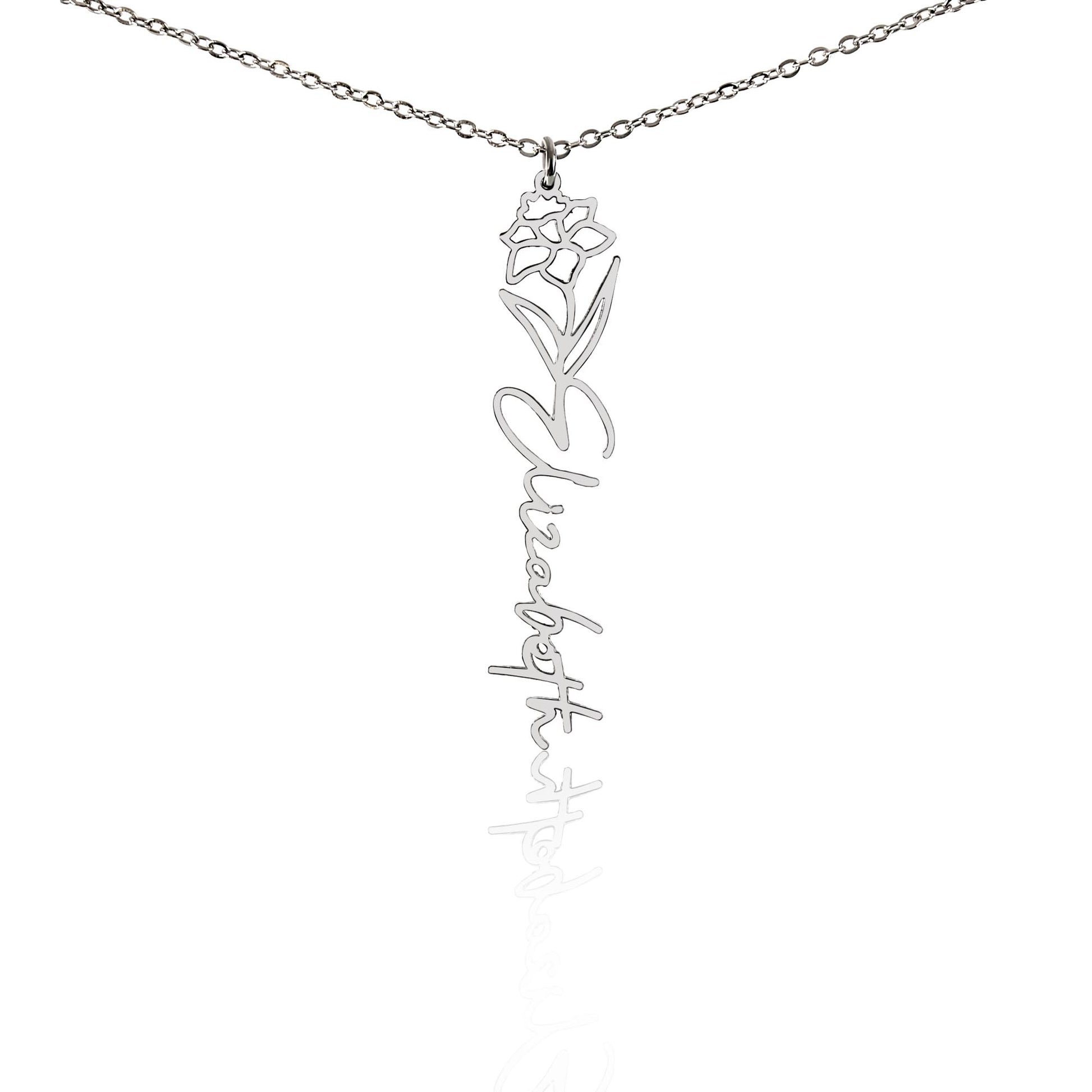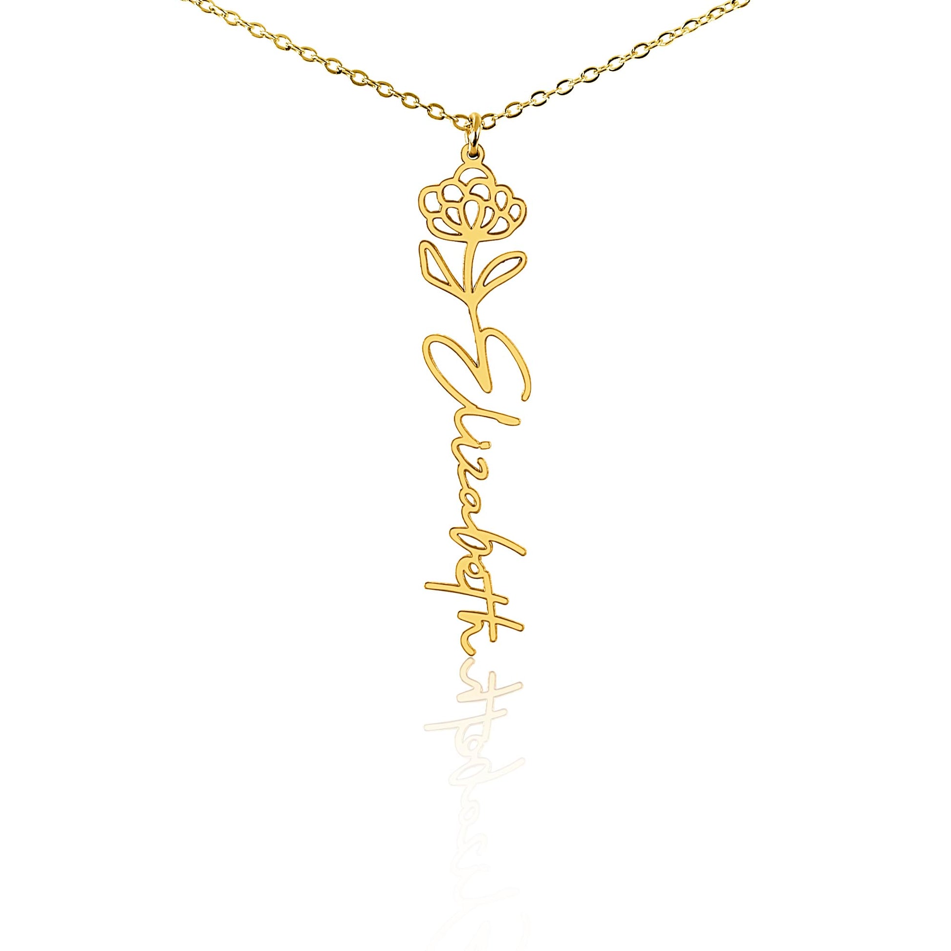 Need a gift that's as unique as she is? Then look no further than our Flower Name Necklace! With a customizable birth flower design, this necklace is a meaningful addition to any jewelry collection. Whether you're dressing up for a special occasion or simply want to add some flair to your everyday look, this necklace is perfect for your special someone. Handcrafted from high-quality materials, it is both stylish and durable. So why wait? Personalize your own floral name necklace today!